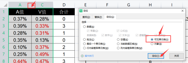 此时选择前三列后,选定位--可见单元格-选复制,然后接上一步黏贴的数据后进行黏贴