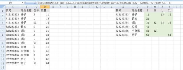 ROW($2:$7)*100+COLUMN($P:$S)改为ROW($2:$7)+100*COLUMN($P:$S)稍做D2公式调整即可