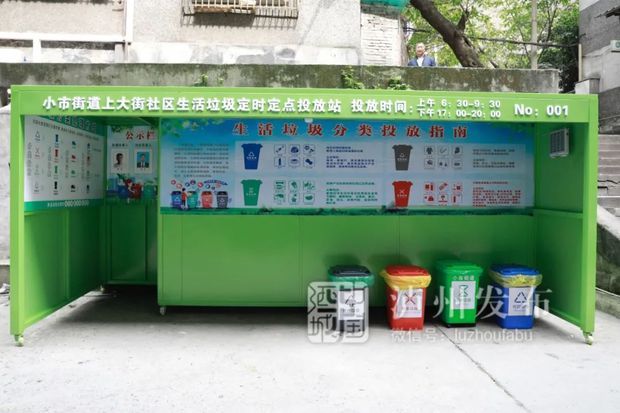 泸州“定时定点”倒垃圾要来了?龙马潭已经开始试点 媒体:川江号 2021-04-26 11:30 近日 一种新的垃圾分类模式在龙马潭区出现了 ——“定时定点”投放 这种新模式撤去了以往提供 “24小时服务”的垃圾桶 改为每天定时倒垃圾 为什么要“定时定点”投放垃圾? 今后将如何推广? 泸小布带你一探究竟 N桶变4桶 小市街道上大街社区辖区内多为散居楼栋,此前,附近楼栋加起来有近50个垃圾桶。如今随着生活垃圾定时定点投放站的启用,原来的垃圾桶被撤掉,附近300余户居民开始定时定点进行垃圾投放。