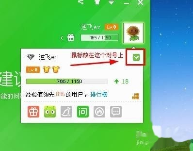 登录成功,鼠标放在头像上,注意是放在上面,不要点击哦。