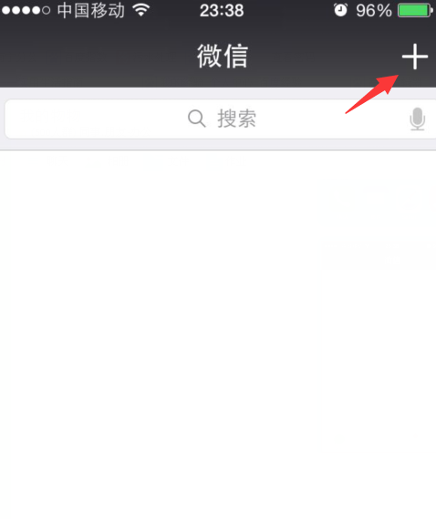2.然后在我们打开微信后,进入到的主界面中,我们在其上方右侧最上选项中的“+”选项,并点击一下它。