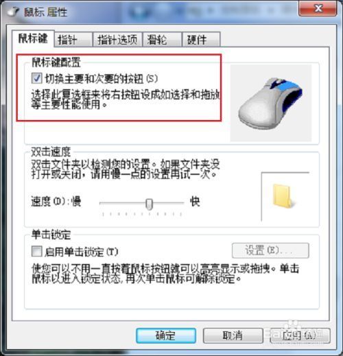5 第五步可以勾选切换主要和次要的按钮,鼠标右键和左键的功能会替换,点击确定,看一下鼠标是否点击灵敏,如下图所示: