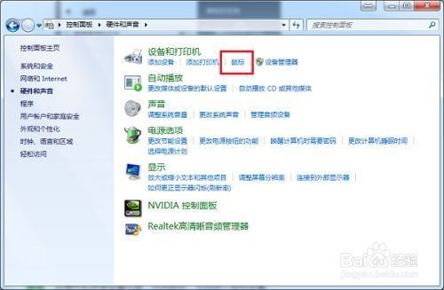 3 第三步进去硬件和声音界面,点击设备和打印机下方的鼠标,如下图所示: