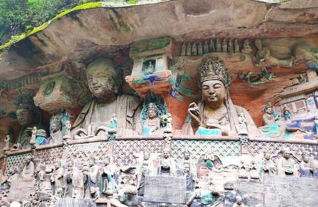 其次是宝顶山摩崖造像群,虽然角度不太一样,但是对比实景还是能看到相同之处。