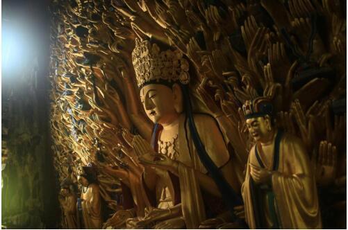 首先是千手观音像,可以说是完美还原,游戏里的光影特效甚至将石窟的威武雄壮表现更具真实感!