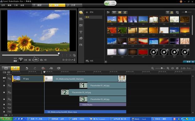3、绘声绘影:也是操作简单,界面简洁明快,适合家庭日常使用,内置视频模板,网上也有一些模板可以下载。