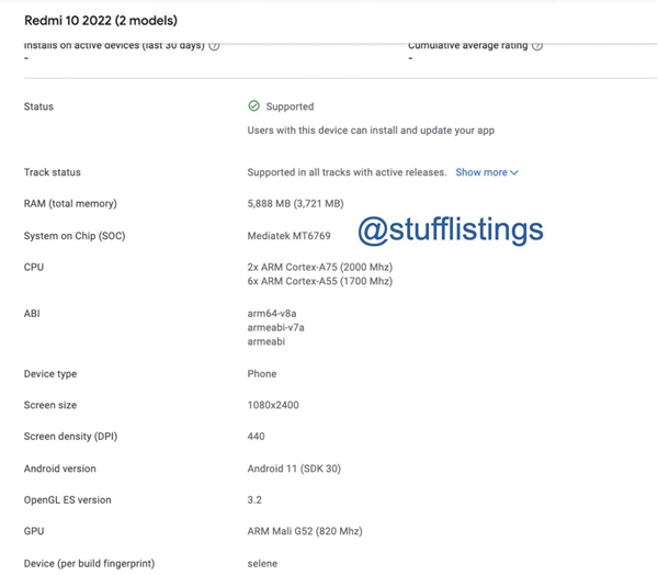 根据Google Play控制台显示的信息,Redmi 10将会搭载基于Android 11的MIUI12.5系统,并配备一块1080x2400分辨率的FHD+显示屏,主打入门用户。