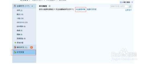 4.在“好友管理”界面的左下角选择“恢复好友”,再点击“点击查看详情”