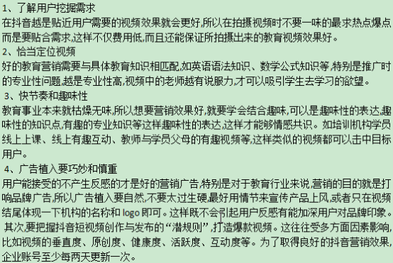 在抖音越是贴近用户需要的视频效果就会更好,所以在拍摄视频时不要一味的最求热点爆点而是要贴合需求,这样不仅费用低,而且还能保证所拍摄出来的教育视频效果好。