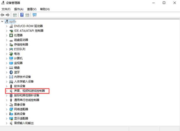 (3)进入设备管理器页面,找到声音、视频和游戏控制器并点击它。