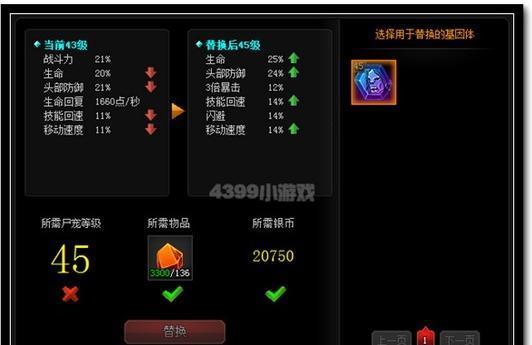 2、限制条件:你只能选择品质好过或者与当前尸宠品质相同的同类基因体。