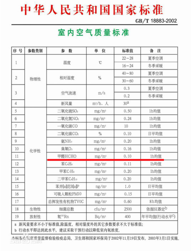 我们所指的床垫的甲醛释放量是以释放到空气中的甲醛含量为标准。国家《室内空气质量标准》规定:甲醛释放标准为“不超过0.1毫克/立方/小时”。请见下面附表: