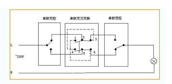 三联开关接线图,理论上中间这个双刀双掷开关可以接N多个