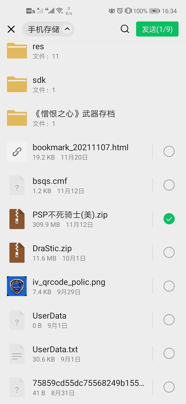 别从分享点,打开文件,翻文件夹找到自己的东西,发送出去就行了。