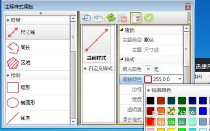4 如果,在页面右侧看不到距离工具属性框,我们可以鼠标右键点击菜单栏中的距离工具,进入到注释样式调板中对距离工具属性进行设定。
