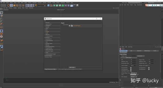 再打开C4D R21,按Ctrl+E(设置)打开窗口。(插件在plugins文件夹里,脚本在prefs文件夹里,预设在library-browser文件夹里。)然后再找到Plugins,在Plugins面板中选择我们之前安装目录下新建的Plugins文件夹。