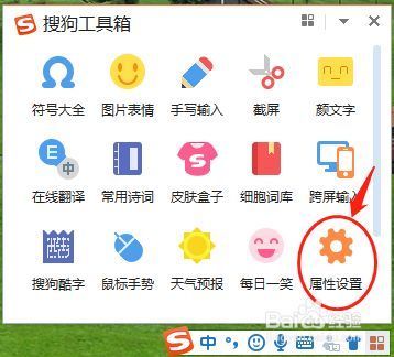 2 在点击工具箱后进入搜狗工具箱,然后点击点击属性设置。如下图所示: