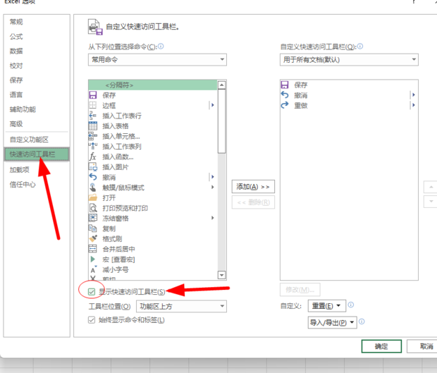 很简单的,进入选项的快速访问工具栏,将“显示快速访问工具栏”前面的勾去掉就可以了
