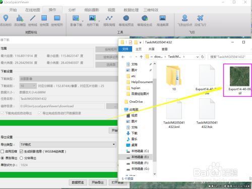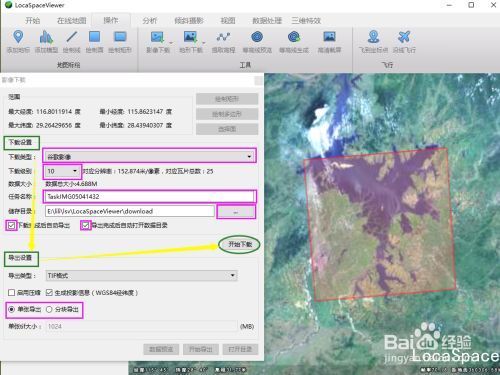 6 完成下载设置和导出设置后,点击开始下载,完成下载后在设置的储存目录中找到下载的TIF文件,即为下载成功的高清影像。