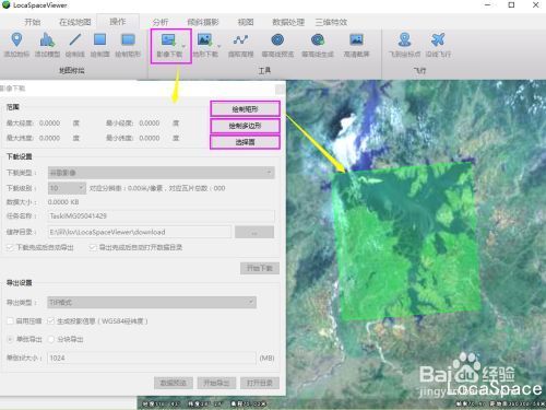 LocaSpace Viewer是一款免费的三维数字地球软件,功能强大,使用方便,可下载高清的影像数据。 工具/原料 LocaSpace Viewer(LSV) 电脑 方法/步骤 1 打开LSV,在操作菜单中选择影像下载,这里影像下载包括选择或绘制范围、导入任务,选择或绘制任务是新建下载,而导入任务可以导入之前没有下载完的任务继续下载,这里我们点击选择或绘制范围。