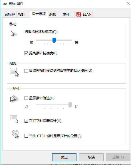 A、选择指针移动速度:默认值50%即可。“提供指针精度额度”前面打上勾(√)。