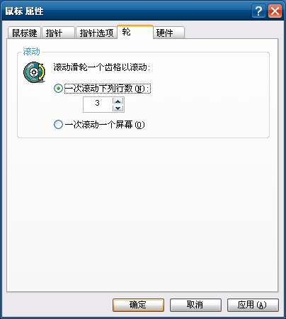 这是默认状态,可以根据实际需要随时设置滚动行数,或“一次滚动一个屏幕”。