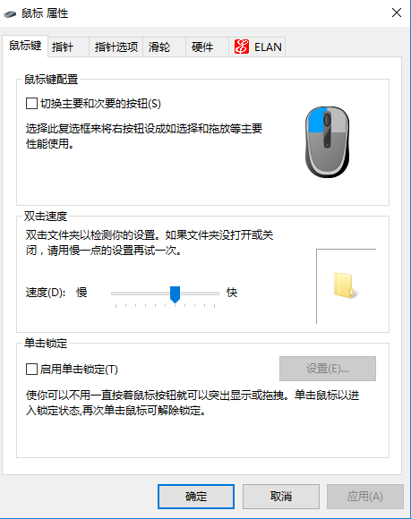 在弹框“鼠标键”页面可设置鼠标键配置和双击速度等