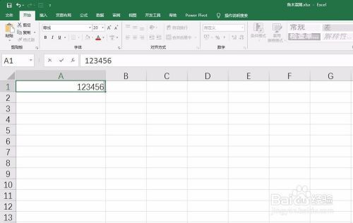 5 此时,原来单元格中显示的数字就看不到了,只有在编辑栏中可以看见,如下图所示: