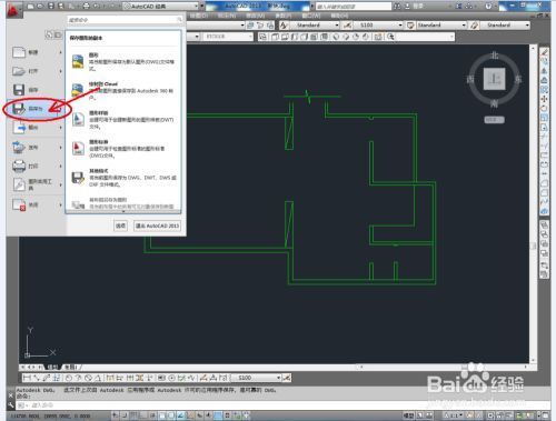 3 双击打开保存好的新快文件,点击【文件】-【存储为】将文件保存为AutoCAD 2014.dwg(因为AutoCAD低版本导入3Dmax软件较为合适);