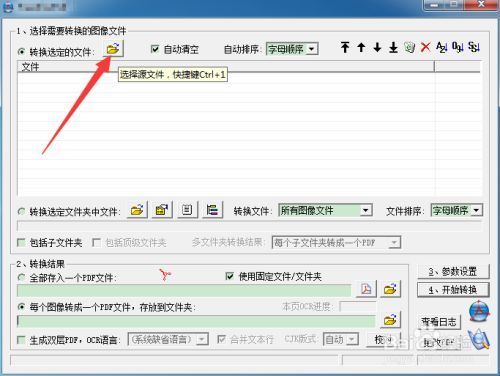 工具/原料 操作系统:Windows 7旗舰版 软件版本:freepic2pdf V4.04 方法/步骤 1 打开软件,点击选择源文件按钮,或使用快捷键Ctrl+1。