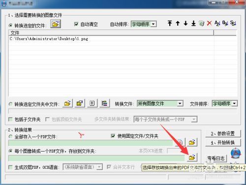 3 使用每个图像转成一个PDF文件,存放到文件夹,点击选择存放转换出来的PDF文件的文件夹按钮。