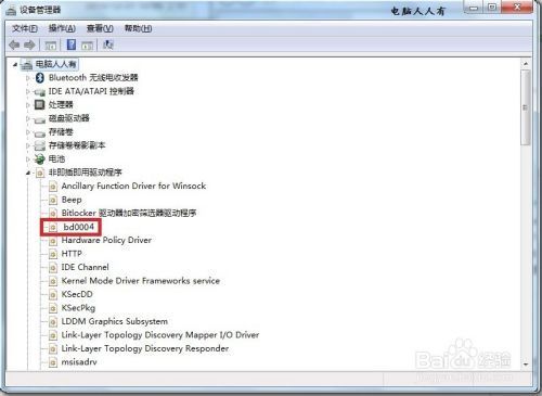 4 其实,这个bd0004.sys文件是百度安全软件的驱动,和系统不兼容所致,卸载它就可以了。步骤是:使用Win+R调出运行,在其中输入:devmgmt.msc 回车(Enter)打开设备管理器。