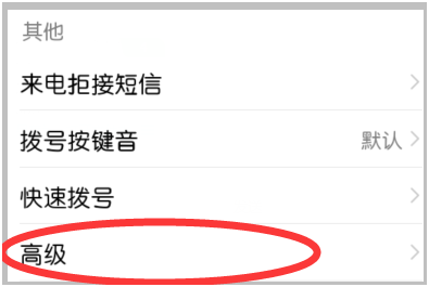 3、然后在打开的通话设置页面向下滚动页面,找到页面最下方的“高级”选项。