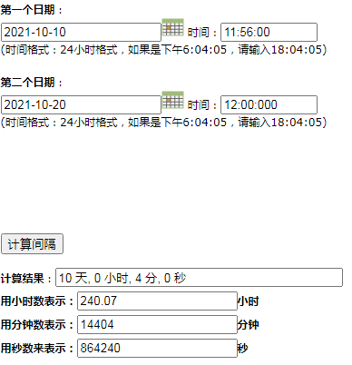 2021年10月10号11点56分到2021年10月20号12点整有多少个4小时