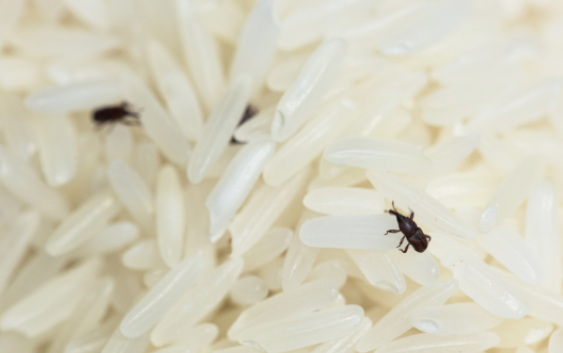 因为有一些虫子会在水稻被收割前,在稻米上开个小洞然后把虫卵产在洞里再将洞口填充好。等水稻被收割后,在储藏时温度适合了虫卵便会孵化成幼虫。