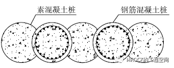 咬合桩(secant pile)是基坑排桩围护体的一种形式,钢筋混凝土桩与素混凝土桩切割咬合,桩与桩之间排列构成相互之间互相咬合的桩墙,桩与桩之间可一定程度上传递剪力,在挡土的同时,可以有效地起到止水的作用,适用于地下水位高、场地狭窄的地区使用。