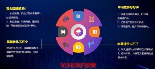 在内容营销时代,虽然目前短视频是更具备表达力的内容形态,也更适合当下时间碎片化场景需求,但相比于传统的图文广告,优质的短视频内容制作成本高、周期长,如何利用好这张牌做出好效果,成为了各品牌主面临的难题。 如何简单快速做好一个视频?分享两个关键点给大家: 1.首先需要有完善的文案 好的文案可以让网民深入其中忽略广告的本质,达到原生营销的效果。 文案方向可以从以下几点着手:“冲突”、“共鸣”和“利益”: 冲突:“三个月赚了500w,他是怎么做到的?”从常规无法达到的事情入手引起网民兴趣,突破常规。 共鸣:“大学毕业之后,我也经历过找不到工作……”引起网民共鸣,让信息接收者也感同身受有代入感。 利益:“自从在这学了表达技巧,一路升职加薪”,用网民的期望点引起兴趣,也可结合痛点给出解决办法。 2. 短视频的“黄金5秒” 抓住黄金5秒,短视频前5秒是能否激发网民浏览兴趣的关键时段,能够带动整体视频节奏。 这5秒中需要抛出冲突或者噱头(竖版视频则是前3秒),激发需求、吸引网民继续观看;接下来的10-15秒可以进行剧情反转,最后5秒把卖点呈现出来。整个短视频应该在30-40秒左右。