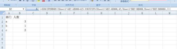 公式=SUMPRODUCT((表1$A:$A=表2A2)*1/COUNTIF(表1$B:$B,表1$B:$B))