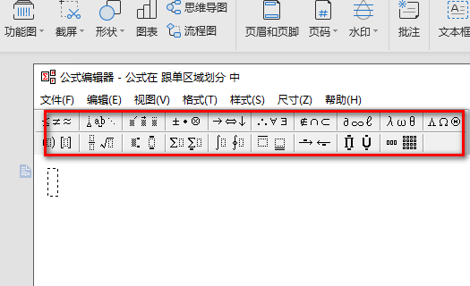 5、点击工具栏后,公式编辑器中的工具栏就出来了。